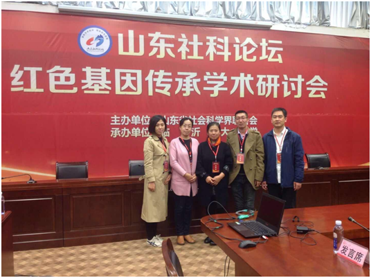 2018年10月13日-14日,受临沂大学太阳成集团tyc122ccvip官网入口的邀请,公司思政部副主任薛金莲教授率《纲要》课教师共5人在临沂大学参加了由山东省社会科学界联合会主办,临沂大学承办的“山东社科论坛——红色基因传承学术研讨会”。