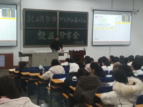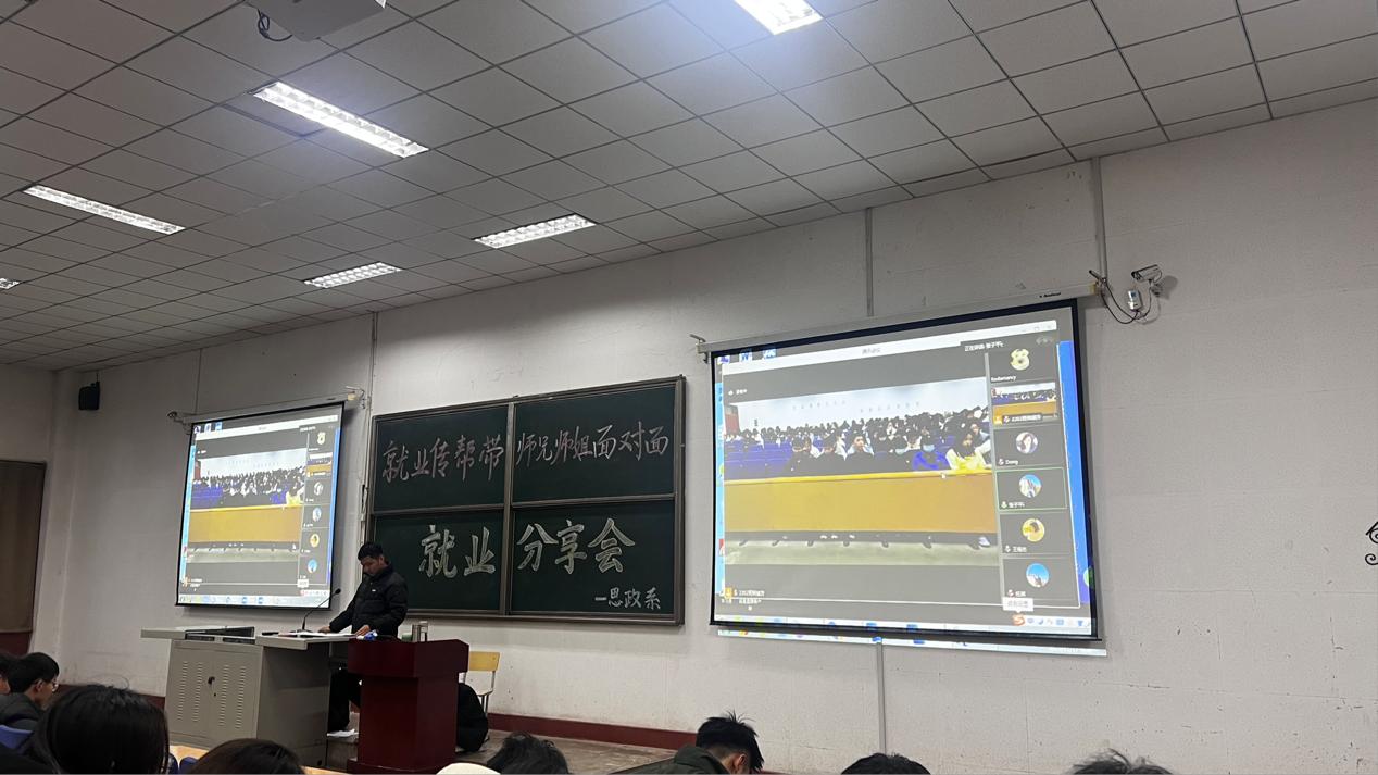 为全面落实党中央、国务院对高校毕业生就业创业工作的决策部署,全面推进思政系毕业生就业工作,我系于11月27日在弘毅楼1C-201开展了“就业传帮带,师兄师姐面对面”就业分享交流会,思政部(系)党总支书记赵东旭、主任翟翠玲、党总支副书记李鸿凯、分团委书记董贺、2024届毕业班班主任参加了会议。