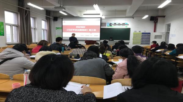 翟老师首先阐述了《习近平谈治国理政》第三卷的出版背景,从“两个大局”的角度出发,强调要站在世界高度,用国际眼光深刻理解这本书。关于《习近平谈治国理政》第三卷的主要内容,翟老师分别从阐释中国共产党人的初心和使命,增强忧患意识、防范化解风险挑战和完善和发展我国国家制度和治理体系三个方面做了阐释。在此基础上,翟老师就第三卷论述了以马克思主义为指导的重要性,乡村振兴的实施和战略意义、贯彻新时代党的组织路线的重要性等几大创新点进行了详细论述。翟老师强调《习近平谈治国理政》第三卷集中体现出马克思主义中国化的最新理论成果,既是全面系统反映习近平新时代中国特色社会主义思想的权威读本,又是认识和理解“中国之治”的“思想之门”,具有重要的理论价值和实践意义。她号召全体教师要真情实感读原著,真心实意学原文,真下功夫悟原理,学深悟透《习近平谈治国理政》第三卷,深入领会掌握习近平新时代中国特色社会主义思想的科学体系,进一步增强学思想、悟思想、用思想的自觉性和坚定性。