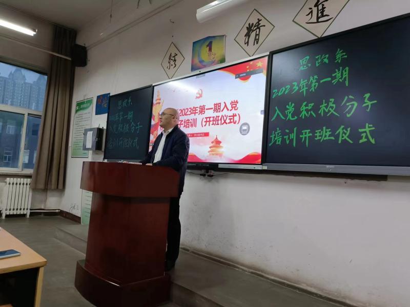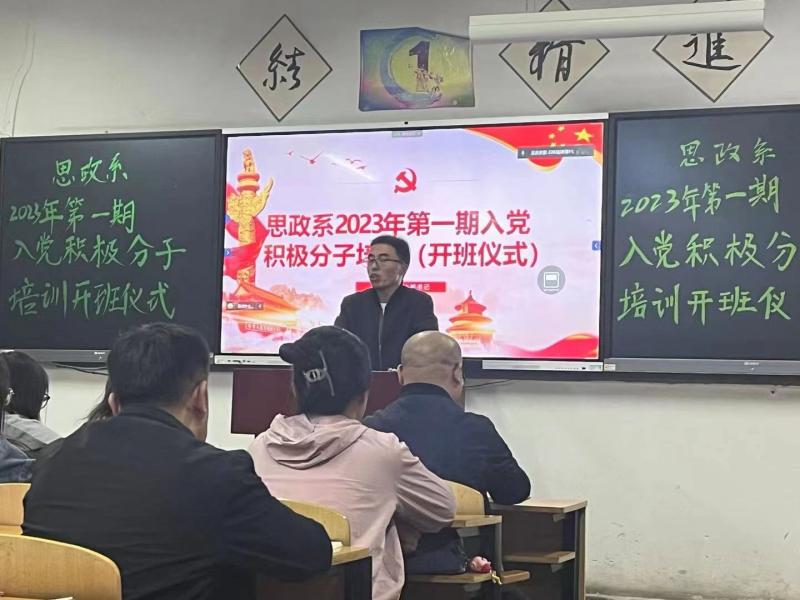 为深入学习贯彻党的二十大、二十届二中全会精神,进一步加强对入党积极分子的培养和教育,确保发展新党员的质量,保持党组织的先进性和纯洁性,提高党组织的战斗力,思政系党总支于2023年4月14日晚在2A-504举行2023学年第一期入党积极分子培训开班仪式。思政系党总支书记赵东旭出席开班仪式,全体参训学员参加。开班仪式由员工支部书记李小旭主持。