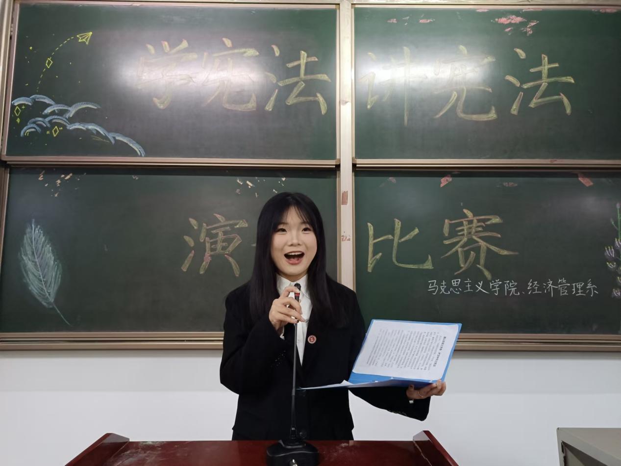 比赛中,姚佳慧同学阐述了青年一代与宪法之间的联系,告诉同学们应当在青春奋进的征程中,始终以宪法为灯塔,照亮前行之路;权桂如、郝奇睿等同学分别从不同角度阐释了学习宪法的重要性,分享了自己在学习宪法过程中的感悟。