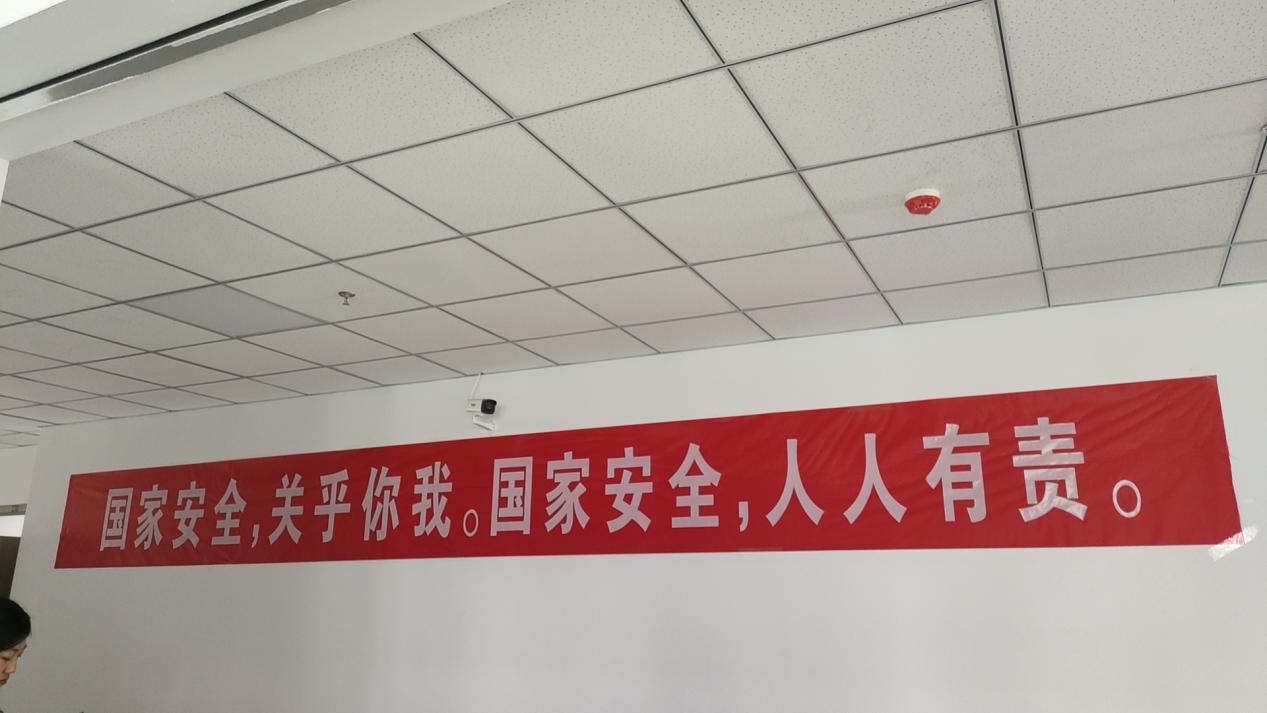 公司还在办公区和教学区张贴了总体国家安全观宣传标语。
