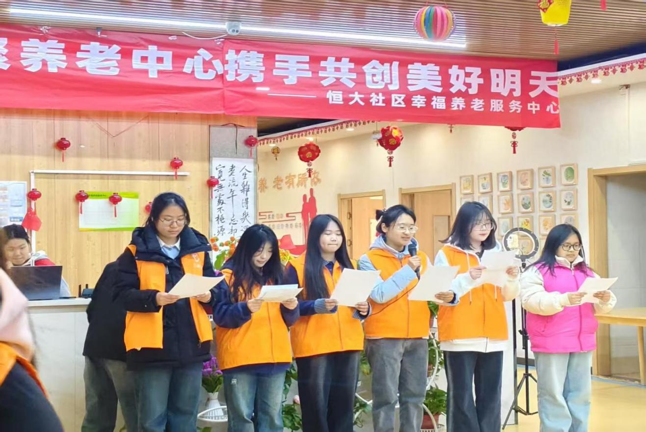 本次活动,志愿者团队划分为文艺演出和卫生清理两个小组,同步推进确保活动各环节有序开展。表演环节,姚佳慧同学用葫芦丝吹奏的《月光下的凤尾竹》让老人们沉浸在宁静而美好的氛围中;张诗瑜同学带来的评剧《花为媒》,引得老人们连连叫好;邬海霞、卫佳、翟文清等同学带来的朗诵《大梦遗河》带领老人们穿越历史的长河,感受文化的厚重;2402班的十位同学带来合唱《明天会更好》,传递着对未来的美好期许,仿佛为老人们的心灵深处,注入了一股温柔的暖流。活动中还进行了击鼓传花游戏,老人们积极参与,在欢乐与笑声中活动落下了帷幕。
