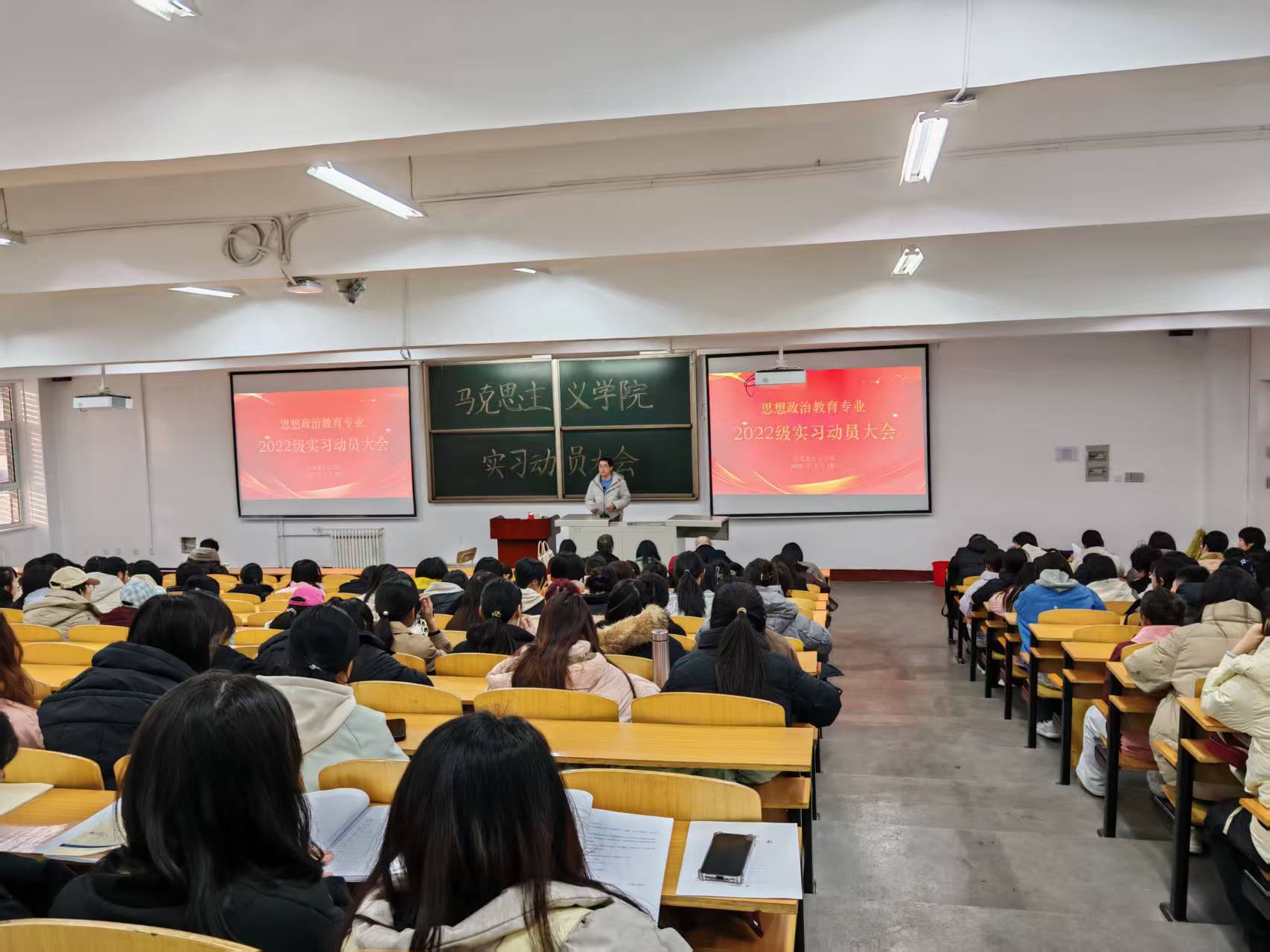 为了扎实做好教育实习工作,提高师范专业员工整体实践能力和综合素质,太阳成集团tyc122ccvip官网入口于2月18日在1c-102教室召开了2022级思想政治教育专业实习动员大会。公司领导班子、辅导员、实习指导老师和22级全体员工参加了本次动员大会。