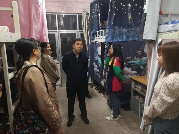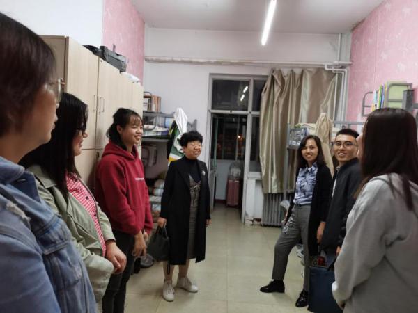金秋送爽,丹桂飘香,在我国传统节日——中秋即将到来之际,9月30日19时30分,思政系书记武瑞荣、主任翟翠玲、副书记宫东红、副主任康小兵、分团委书记李鸿凯,在辅导员高晶晶、李小旭及班主任陈海霞、陈爱爱、王俊萍、王丽的陪同下,深入员工宿舍慰问思政系学子,提前向他们送去系部和老师们的关怀和温暖及中秋祝福和问候。