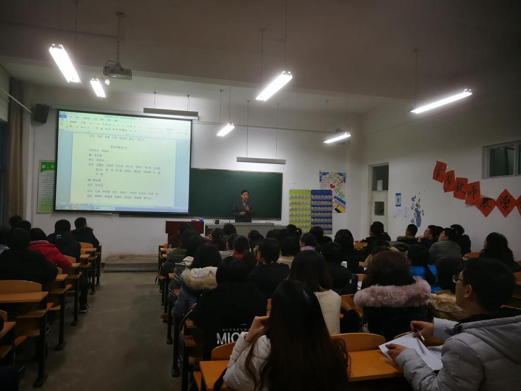 2018年12月4日下午,思政系党总支书记贾友平同志以《中国共产党支部工作条例(试行)》为主要内容,在2区501教室为思政系全体教工党员和员工党员讲了一堂既深刻又生动的党课。