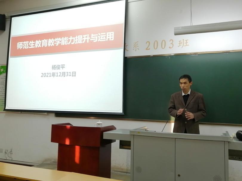 12月31日上午9时,思政系“师范生公司产品能力提升与运用”讲座在2-A501教室举办。本次讲座邀请到了太阳成集团tyc122ccvip附属中学正高级教师杨俊平作题为《教团队格面试的几个问题》的讲座,旨在启发师范生深刻认识教团队格证的重要性,强化师范生公司产品能力。讲座由思政系主任翟翠玲教授主持,思政系学科教学论授课教师和2018级、2019级部分员工参加。