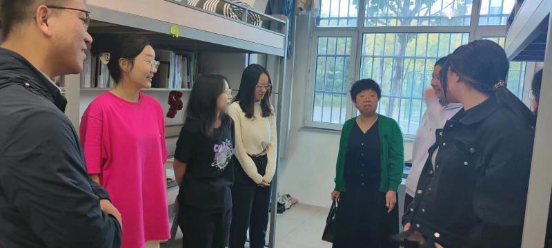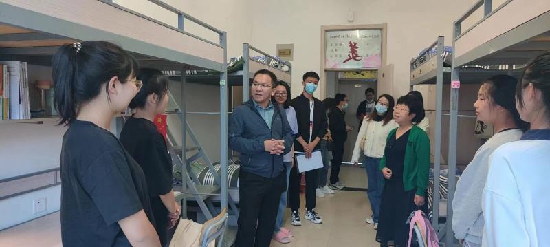 按照属地疫情防控要求,从9月29日晚21时起,吕梁市离石区静默管理,全校封控。为第一时间解决员工学习、生活困难,建立起员工与老师沟通的桥梁,自10月1日起,思政系主任翟翠玲、党总支副书记李鸿凯带领辅导员、班主任深入员工宿舍走访,看望慰问我系在校员工。