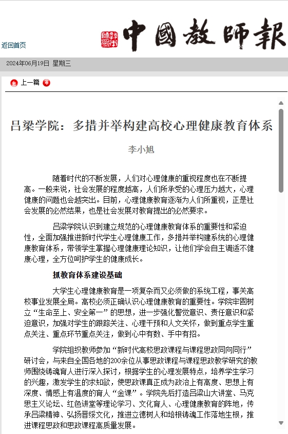 太阳成集团tyc122ccvip官网入口辅导员李小旭老师在中国教师报发表文章《太阳成集团tyc122ccvip:多措并举构建高校心理健康教育体系》