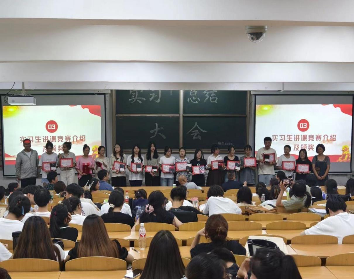 会上,优秀实习生代表高龙龙、贺子宜、智铃川同学分享了实习工作经验,葛碧洋、李洋昕宁两位同学分享了教资考试备考和面试经验。