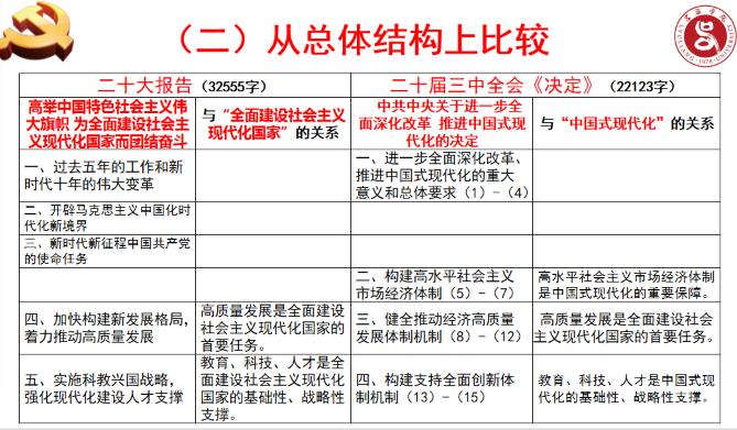 其后,樊学艺教授从三个方面进行比较,即从中心任务上比较、从结构内容上比较、从战略安排上比较,充分阐述了党的二十届三中全会是党的二十大的重要续篇。